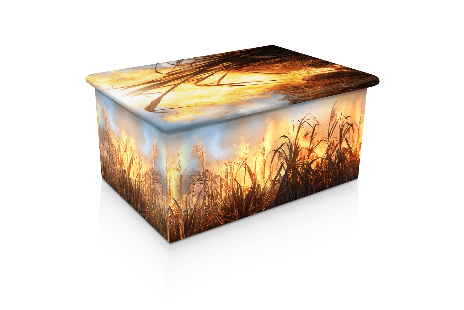 A beautiful designed Ashes Urn for a loved one who was into sugar cane farming. As the crop grew and was harvested, farmers tend to burn off the remaining crop to make way for new growth. This Ashes Urn resembles the process in which farmers use to grow new sugar cane crop.
